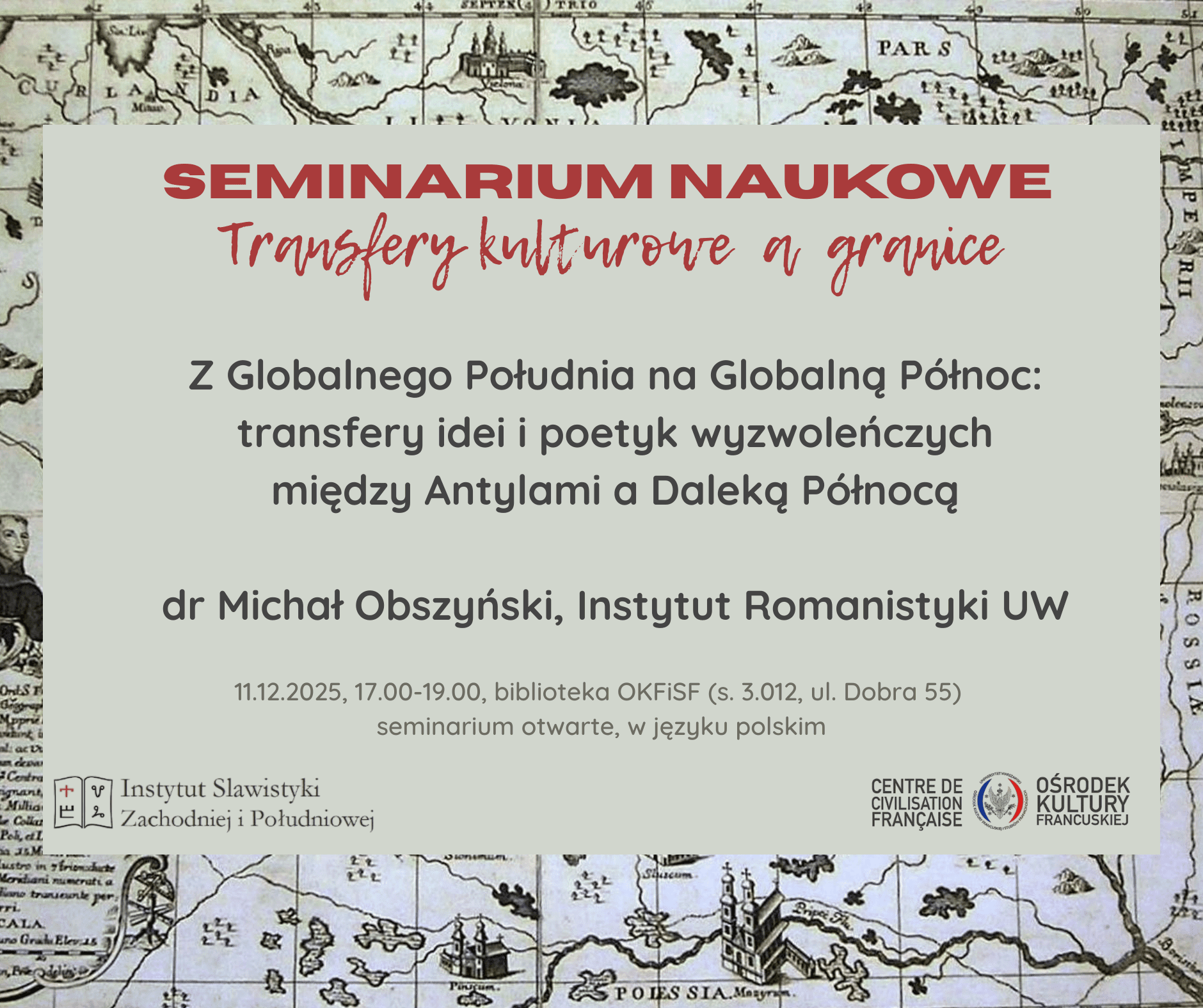 8.12.2025, godz. 15.30, sala 1.110 budynku Wydziału Neofilologii UW, ul. Dobra 55, Warszawa