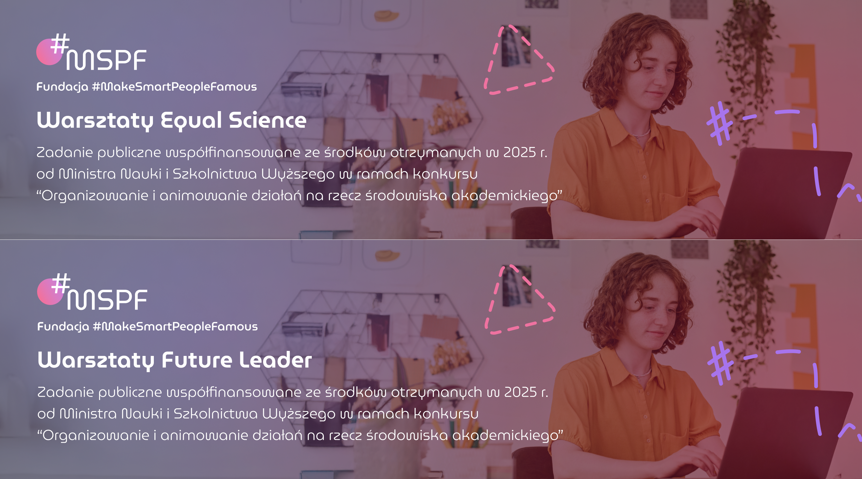 in October, we invite you to a series of free online workshops organized as part of the nationwide Equal Science and Future Leader projects, implemented by the #MakeSmartPeopleFamous Foundation and co-financed by funds received in 2025 from the Minister of Science and Higher Education as part of the “Organizing and animating activities for the academic community.”
